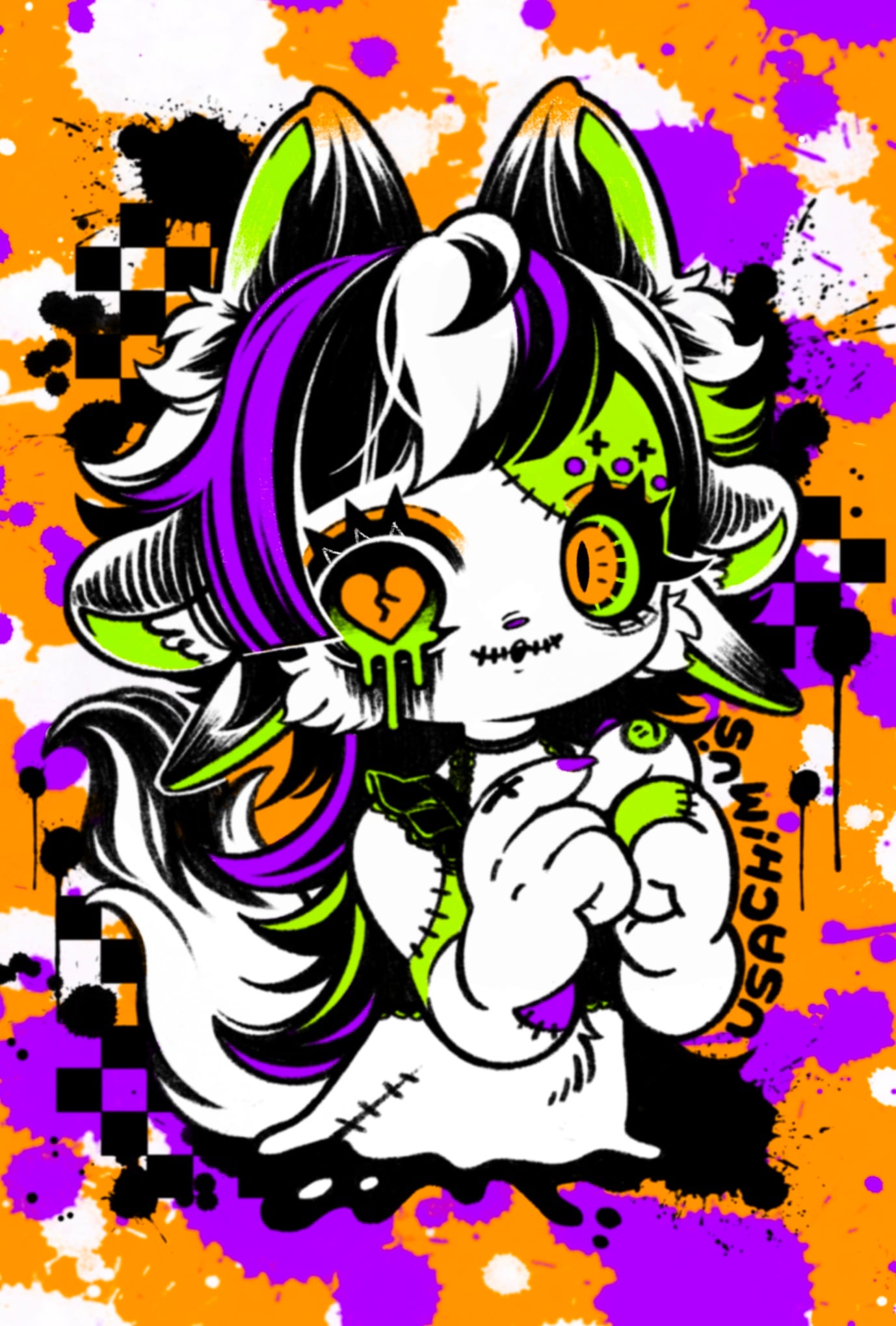 カラフルで毒々しい女の子たち4人のポストカードセット!♡どの子が好みかな??年中ハロウィンを楽しめるようなカラフルでダークなイラストにしました!☺︎!是非GETしてね⭐︎